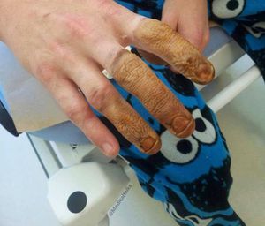 Don’t stick your fingers in hot oil!! This patient clearly fried his fingers by dipping them in boiling oil.