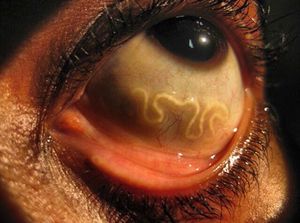 Besides it's morphological differences (enterobius is a lot smaller, mm, and looks like a pin) it is found in the rectal and a anus area. Loa loa is cm long....