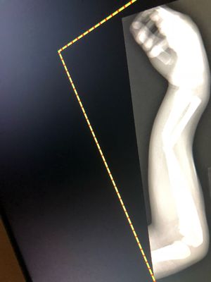 5 y/o child fell off a chair and landed on arm, resulting in this injury