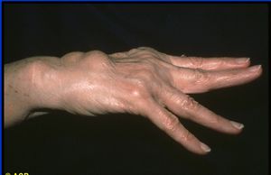1.extensor tandon rupture 2.telescoping digits 3.flexion tenosinovitis 4.swan neck