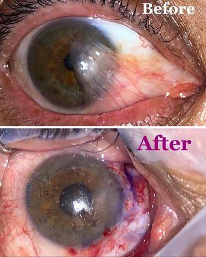 By @laser_eye_center_of_miami - Beautiful result minutes after topical pterygium excision surgery with amniotic membrane transplantation and Mitomycin C People with pterygium have a triangular-shaped fleshy tissue that grows onto the cornea usually from the nasal side of the eye. It is a noncancerous lesion, usually not a serious condition that thought to be due to environmental factors such as ultraviolet light, chronic dryness and exposure to wind and dust. Surgical excision, with or without conjunctival grafting (for reducing recurrence) is indicated if the pterygium progresses towards the center of the cornea or for cosmetic reasons. During the surgery the pterygium is removed and the patient's own conjunctiva is either glued or stitched to the area in order to fill the empty space created by the removal of the pterygium.