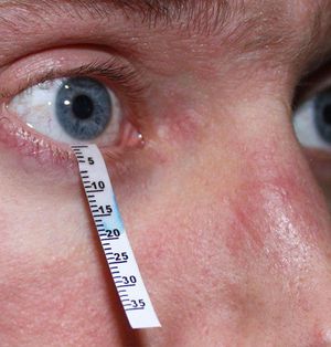 Schirmer's test determines whether the eyeproduces enough tears to keep it moist. This test is used when a person experiences very dry eyes or excessive watering of the eyes. It poses no risk to the subject. A negative (more than 10 mm of moisture on the filter paper in 5 minutes) test result is normal. Both eyes normally secrete the same amount of tears.