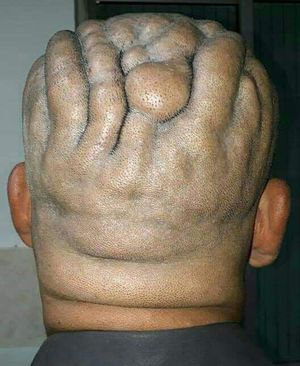 Cutis verticis gyrata (CVG) refers to deep folds on the scalp that look similar to the folds of the brain. It occurs more commonly in males, and most commonly develops after puberty, but before age 30. Primary cases can be associated with neuropsychiatric disorders including cerebral palsy, epilepsy, seizures and ophthalmologic abnormalities, most commonly cataracts. Secondary cutis verticis gyrata occurs as a consequence of a number of diseases that produce changes in scalp structure.