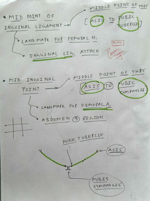 Mid inguinal point and mid point of inguinal ligament