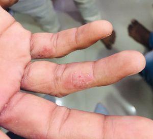 21 yr Male presents dermatophyte since Around more thn one month it occurred, itching sensation is their, not occurred at any other part of the body
