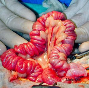 Mesentery is a double-layered continuation of the visceral and parietal peritoneum in the abdominal cavity. The mesentery functions to anchor the intestines to the abdominal wall. It is composed of a thin layer of peritoneum containing blood vessels, nerves, and lymphatic branches to allow the digestive system to function properly. The Mesentery also has an outerlining fat storage for protection. Technically speaking, there are three different mesenteries - the mesentery of the small intestine (mesentery proper), transverse mesocolon and sigmoid mesocolon. The image shows the mesentery of the small intestine. It is shaped like broad fan, attaching to the jejunum and ileum. Superiorly, it is attached to the end of the duodeno-jejunal junction. The blood vessels, lymphatics and nerves of the jejunum and ileum are found between the two layers of the peritoneum that make up the mesentery of the small intestine.
