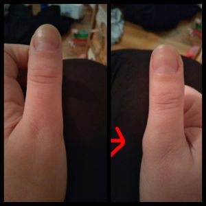 Yeah! Thumb is normal now. 😊 It was broken, deformed and luxation or something if I understood right 😀 doctor showed me x-ray photo. but it is okay right now!
