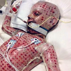 It has been posted here before... The boy suffered from Steven Johnson syndrome...His post-recovery picture was also posted