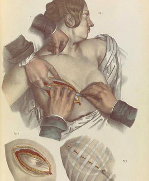This illustration demonstrates a mastectomy (Removal of breast) from 1841. Back then there was no anesthesia, nor antibiotics. Thus, the operation was painful and dangerous. Follow us @medshots for more Courtesy to J.M. Bourgey