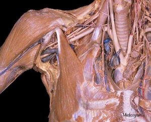 Incredibly well performed dissection of the thorax :) You can easily clearly identify the pectoralis and deltoid muscles, the heart, trachea, brachial plexus, arteria subclavia and more. This is a really an incredible job, because it is really hard to show those structures in such a meaningful way. 📷•Medicogram