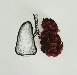 Coloured pencil illustration of a mandibulectomy and neck dissection