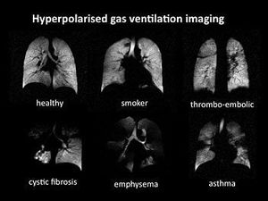 Lung imaging with hyperpolarised gases and proton MRI which provide very detailed images of patient’s lungs without relying on X-rays radiation. The technique of hyperpolarised gas MRI involves a person inhaling small amounts of noble gases (Helium-3 and Xenon-129), which are then imaged inside an MRI scanner. The gases are hyperpolarised using high power lasers by a process called optical pumping. The group have developed specialised gas laser polarisers and custom MRI scanner hardware which provide high-resolution images that are not currently available with conventional methods. The innovative imaging technology illuminates lung function and helps clinicians identify early signs of lung disease, for example earlier diagnosis of emphysema and smoking related damage, as well as other lung conditions and diseases such as pulmonary fibrosis, asthma, pulmonary hypertension and cystic fibrosis.