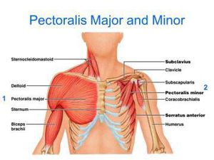 -Pect. Major is innervated by the medial and lateral pectoral nerves whereas the pect.minor muscle is innervated by the medial pectoral nerve only . -action: pectoralis major flexes and adducts the humerus . Pectoralis minor is responsible for downward rotation ,abduction and stabilization of scapule