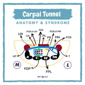 Carpal Tunnel Anatomy & Syndrome. Straight from our YouTube video! @rev.med Link in bio! Anatomy! Follow the diagram in the pic above, or simply go over to YouTube and check out our video! We make it VERY simple. Don’t forget to subscribe! Key: UN: Ulnar Nerve UA: Ulnar Artery PCB of UN: Palmar cutaneous branch of the Ulnar Nerve FDS: Flexor Digitorum Superficialis muscle PL: Palmaris Longus muscle FR: Flexor Retinaculum PCB of MN: Palmar cutaneous branch of the Median Nerve MN: MEDIAN NERVE FCR: Flexor Carpi Radialis muscle FDP: Flexor Digitorum Profundus muscle FPL: Flexor Pollicis Longus muscle T: Thenar muscles HT: Hypothenar muscles BONES: H: Hamate C: Capitate Td: Trapezoid Tm: Trapezium @rev.med on Instagram for more! Clinical! One of the main significance of the Carpal Tunnel drawing is the Carpal Tunnel syndrome which is the compression of the median nerve. One of the ways Carpal Tunnel syndrome can come about is: overuse, thickening of the synovial sheath and tendon, nerve damage, and much more. Clinical manifestation of the Carpal Tunnel syndrome is ‘paresthesia’. In the laymen term it is referred to as limbs falling asleep,and feelings of pins and needles. Know this diagram! This is a fantastic way to learn Anatomy! Subscribe now & make learning EASY!