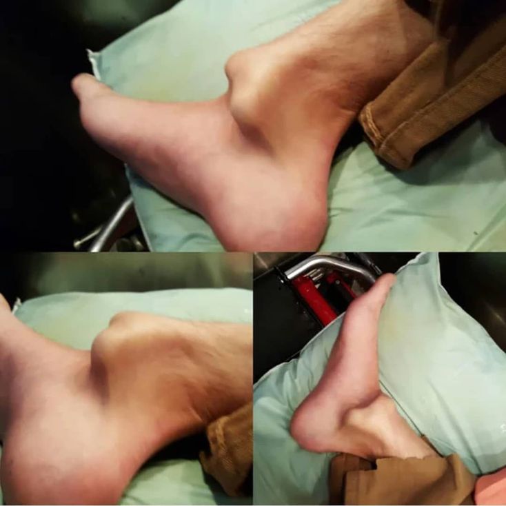 Patient stepped off the board to stop and his foot stuck to the ground but the whole leg and body kept moving forward. That in turn broke his fibula, dislocated the ankle and tore all the ligaments in the ankle. β Apparently the EMT took this picture in the ambulance. He said "Where's your phone, I want to take a picture of this for you. DON'T LOOK AT IT NOW, but you'll want it for later!". Credit: SimonDanziger at reddit.com