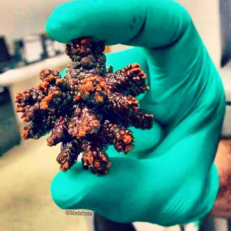 We always hear and read about kidney stones and that the most common types of these stones are calcium oxalate stones, but have you ever seen one? Here is a really interesting photo showing calcium oxalate stone being removed from the kidney. - Calcium oxalate stones are the most common type of kidney stone. Kidney stones are solid masses that form in the kidney when there are high levels of calcium, oxalate, cystine, or phosphate and too little liquid. There are different types of kidney stones. Your healthcare provider can test your stones to find what type you have. Calcium oxalate stones are caused by too much oxalate in the urine. - Mention your friends to see this Follow us @medshots for more