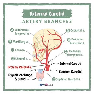 Swipe! Draw this out a few times and you won’t forget it! Mnemonic below. External Carotid Artery & it’s Branches! Some Attending’s Like Freaking Out Potential Medical Students 1. S: superior thyroid artery 2. A: ascending pharyngeal artery 3. L: lingual artery 4. F: facial artery 5. O: occipital artery 6. P: posterior auricular artery 7. M: maxillary artery 8. S: superficial temporal artery Little by little your going to see improvement with memory. Studying for Anatomy strengthens your mind mapping skills. See how we teach on our YouTube channel, link in bio! Follow us on Instagram @rev.med