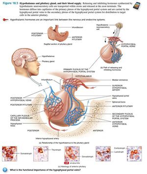 Hypophyseal portal vien carry hormones from hypothalamus to pituitary gland .