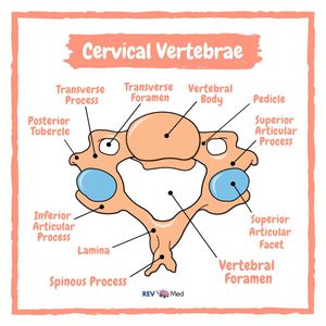 Cervical vertebrae of the spine consist of seven bony rings! These rings reside in the neck between the base of the skull and the thoracic vertebrae in the trunk. Among the vertebrae of the spinal column, the cervical vertebrae are the thinnest and most delicate bones. Yet in spite of their size, the cervical vertebrae have the huge jobs of supporting the head, protecting the spinal cord, and providing mobility to the head and neck! Study Anatomy using our unique videos @rev.med on YouTube! Check out the link in bio! @rev.med on Instagram!