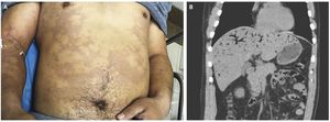 A 42-year-old man presented to the emergency department with palpitations, arthralgias, and vomiting 2 hours after scuba diving to a depth of 26 m. The physical examination revealed diffuse violaceous skin mottling over his trunk and arms (Panel A). Laboratory values were notable for mild elevations in levels of serum aminotransferases, creatine kinase, and lactate. Given the extent of the nausea and vomiting as well as the elevated lactate level, abdominal computed tomography was performed, which showed air in the portal venous system (Panel B). The skin mottling, also known as cutis marmorata, is a recognized dermatologic manifestation of decompression sickness. Air in the portal venous system can also be a complication of decompression sickness. Its incidence is unknown, since abdominal imaging is not routinely performed for this diagnosis. The air in the portal system is thought to arise when a diver ascends too quickly and air expands rapidly, which damages the surrounding tissue. The patient underwent treatment with hyperbaric oxygen. The skin mottling and abdominal pneumatosis resolved after two sessions in the hyperbaric chamber. Qing Sun, M.D. Guangkai Gao, M.D. No. 401 Hospital of the People’s Liberation Army, Qingdao, China source: nejm.org