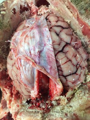 Exposed brain of 1hr old sheep. I removed the brain as a part of a school project on subdural hematomas. The anatomy of the brain is truly beautiful!
