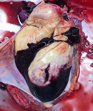Hemopericardium refers to blood in the pericardial sac of the heart. It is clinically similar to a pericardial effusion, and, depending on the volume and rapidity with which it develops, may cause cardiac tamponade. The condition can be caused by full-thickness necrosis (death) of the myocardium (heart muscle) after myocardial infarction, chest trauma, and by over-prescription of anticoagulants. Other causes include ruptured aneurysm of sinus of Valsalva and other aneurysms of the aortic arch. Myocardial infarction