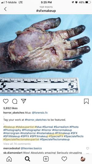 “Wet Gangrene” it would look that way you’re correct, but it is in fact makeup! isn’t that wild?!
