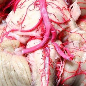 3. Arteria cerebelosa anteroinferior.- rama de la parte inferior de la arteria basilar y transita posterolateralmente, delante de los nervios Abducens, nervio Facial y Vestíbulococlear (VIII), emitiendo la arteria auditiva interna. Irriga la región anterolateral de la cara inferior del cerebelo, anastomosando con la arteria cerebelosa posteroinferior de la basilar. Algunas de sus ramas irrigan la parte inferolateral de la protuberancia anular y a veces, la parte inferior de la medula espinal.