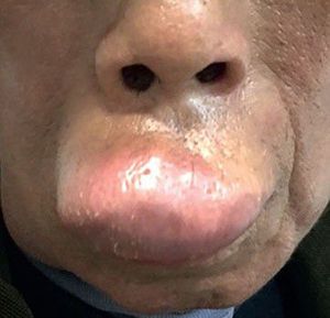 A 60-year-old active male smoker had a swollen upper lip and lower cheek for the past 3 months, which had increased in size during the previous few weeks. No specific other symptoms were reported and his blood tests were normal. He had a smoking history of 300 packs per year for almost 40 years. CT scan of the head and neck showed he had a tender palpable mass measuring approximately 3·5 × 4·7cm on the upper lip and 5·6 × 3·2 cm on the lower cheek, both covered with normal skin. The mass on the cheek was subcutaneous. He neither had no history of injury or tumour. What is the probable diagnosis of the patient? a) Atherosclerotic renal artery stenosis b) Fibromuscular dysplasia c) Vasculitis d) Congenital vascular malformation