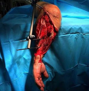 Un macho de los años 30 conduciendo con su brazo por la ventana, disfrutando de un día de verano en Montana cuando rodó su camioneta de recogida y su mano fue cogida y comprimida. Tuvo una terrible lesión en los tejidos blandos asociada con una fractura distal del húmero y dislocación de la fractura transellecránica. Fue tratado con riego y desbridamiento de sus fracturas abiertas seguido de fijación externa. Eventualmente se sometió a ORIF de sus fracturas y fracturas de piel de escisión. Una fijación interna de reducción abierta (ORIF) se refiere a un procedimiento quirúrgico para fijar una fractura ósea severa o romperse. "Reducción abierta" significa que la cirugía es necesaria para realinear la fractura ósea en la posición normal. "Fijación interna" se refiere a las varillas de acero, tornillos o placas utilizadas para mantener la fractura ósea estable para curar el camino correcto y para ayudar a prevenir la infección. Bajo anestesia general, se realiza una incisión en el sitio de la ruptura o lesión, y la fractura se vuelve a alinear cuidadosamente o se reemplaza la articulación. El hardware está instalado, y la incisión se cierra con grapas o puntos de sutura. Las barras de acero, tornillos o placas pueden ser permanentes o temporales y eliminarse cuando se produce la cicatrización. Una vez que se realiza la fijación interna de reducción abierta, generalmente se aplica un molde. Las complicaciones de ORIF pueden incluir infección, hinchazón y movimiento del hardware instalado. El proceso de recuperación puede tardar meses, porque los huesos crecen lentamente. Otros factores que pueden afectar la recuperación son la ubicación y la gravedad de la rotura, la edad de la persona y el tipo de hueso roto.