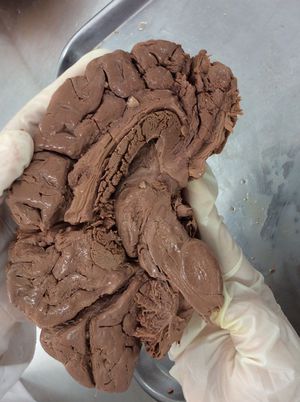 The central nervous system consists of the brain and spinal cord. The peripheral nervous system is made up of the nerves which connect the brain and spinal cord with the rest of the body. The principal parts of the brain are the cerebrum, brainstem, diencephalon, and cerebellum. The cerebrum is made of both white matter and gray matter. The surface of the cerebrum (the cortex) is composed of a thin layer of gray matter (nerve cell bodies), underneath which are the white matter tracts (myelinated nerve cell axons). The diencephalon consists of the thalamus and hypothalamus. The brainstem is the lowest part of the brain just above the spinal cord. It consists of the midbrain, pons and medulla. It controls many of the basic involuntary body functions necessary for life, such as breathing, sleeping and rate of heartbeat. It is in the medulla where the left and right white matter tracts to and from the brain cross over. Nerve impulses to and from the left side of the body are processed in the right side of the brain, while right side body impulses are processed in the left. This is why an injury in the left side of the brain such as a stroke, creates symptoms (loss of sensation, paralysis) on the right side of the body. The reticular formation is a complex network of nerve cell fibers. It is involved with determining our level of wakefulness and sleep.