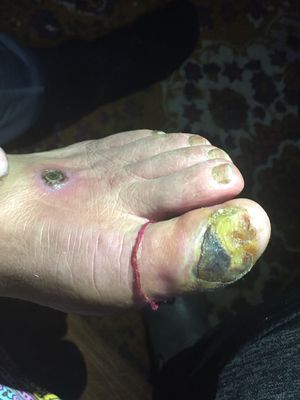Hello guys I’m 3rd year medical student. And this photo is my grandpa’s. His feet turned out this 2 years ago and doctors said he hasn’t any treatment. From his blood test he doesn’t have diabetes and mineral deficiency. So doctor said that there are some sclerosis on some areas. They gave him lot of antibiotics and some drugs that I haven’t even heard. But his feet is aching every night that he can’t even sleep. What do you guys think about this?? I really need your thought