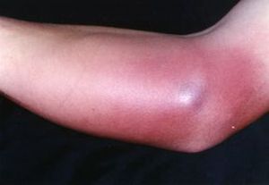A 46-year-old patient is to be prepared to the operation on account of stomach cancer. Preoperative preparation involves infusion therapy. It was injected up to 3,0 l of solutions into his right lunar vein. On the next day he got tensive pain in the region of his right shoulder. Examination of interior brachial surface revealed a stripe of hyperemia, skin edema and a painful cord.