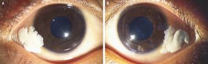 A 4-year-old boy was brought by his father to the ophthalmology clinic with a 1-year history of enlarging white deposits in both eyes and decreased night vision. On examination, the conjunctivae of both the right eye (Panel A) and the left eye (Panel B) appeared dry and wrinkled, with foamy, cream-colored deposits near the outer corners. The corneas were clear, the fundi were normal, and the visual acuity was 20/30 in both eyes. The child appeared pale, with hypopigmented hair, a weight of 10.5 kg (z score of less than −3), and a height of 92 cm (z score of −2.8). The ocular findings were consistent with Bitot’s spots, which are accumulations of keratin, often intermixed with an overgrowth of Corynebacterium xerosis, that result from epithelial metaplasia caused by vitamin A deficiency. Vitamin A deficiency can also cause blindness, as a result of corneal ulceration with scarring, and particularly night blindness, as a result of dysfunction of rod photoreceptor cells. In this patient, the serum vitamin A level was 16.8 μg per deciliter (0.59 μmol per liter) (reference range, 20 to 40 μg per deciliter [0.70 to 1.40 μmol per liter]), and the retinol-binding protein level was 0.01 g per liter (reference range, 0.03 to 0.06). Further history taking revealed extreme poverty, and further examination showed signs of dietary deficiency, with no evidence of intestinal parasites. The patient received an oral dose of vitamin A, which was repeated 4 weeks later. Artificial tears were also administered. The Bitot’s spots abated, although they did not completely resolve, over the course of 12 weeks. The parents were advised to administer another dose of vitamin A every 6 months until the child was 5 years of age. Jagat Ram, M.S. Jitender Jinagal, M.S. Post Graduate Institute of Medical Education and Research, Chandigarh, India source: nejm.org