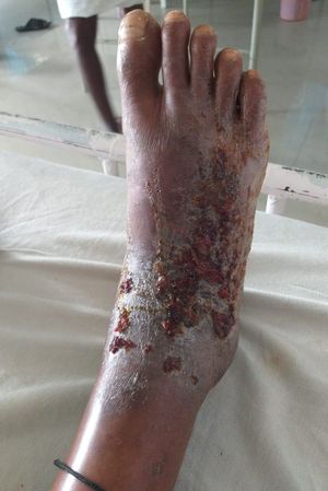 Stasis dermatitis? Or diabetic foot or allergic contact dermatitis