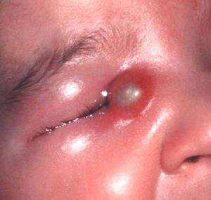 Dacryocystitis is an infection of the lacrimal sac, secondary to obstruction of the nasolacrimal duct at the junction of lacrimal sac. The term derives from the Greek dákryon (tear), cysta (sac), and -itis (inflammation). It causes pain, redness, and swelling over the inner aspect of the lower eyelid and epiphora
