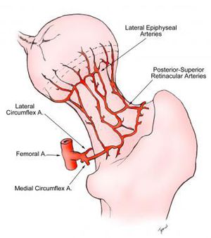 Avascular necrosis due to damage to retinacular arteries