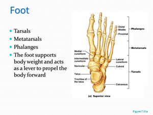 Anatomy of tarsals, metatarsals, phalanges.