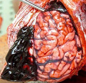Subdural hematoma This causes hemorrhage and the subdural space between dura mater (hard meninges) i Arachnoid mater (part of the soft meninges) must be treated as quickly as possible. The accumulating blood in the gap comes from the bridge veins i puts pressure on the underlying brain. Such bleeding is life threatening.