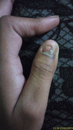 I'm not sure but it looks like onycholysis (which has multiple causes e.g. psoriasis, trauma etc.) or tinea unguium