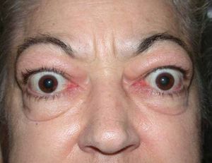 It is a condition of the eye (especially), in which the eyeball is displaced forward. Here the unilateral asymmetric protrusion of one eye, by 2 mm, is seen. The measurement of the degree of bulging of eyeball can be performed by using exopthalmometer. Complete or partial dislocation of the eyeball from the orbit is also possible from the swelling of surrounding tissue resulting from trauma. The problems associated with proptosis can be poor blink mechanism, corneal ulcers, decreases vision and extra ocular muscle function. Thyroid eye disease is the most common cause of this disease. There are other several causes also observed in some cases.