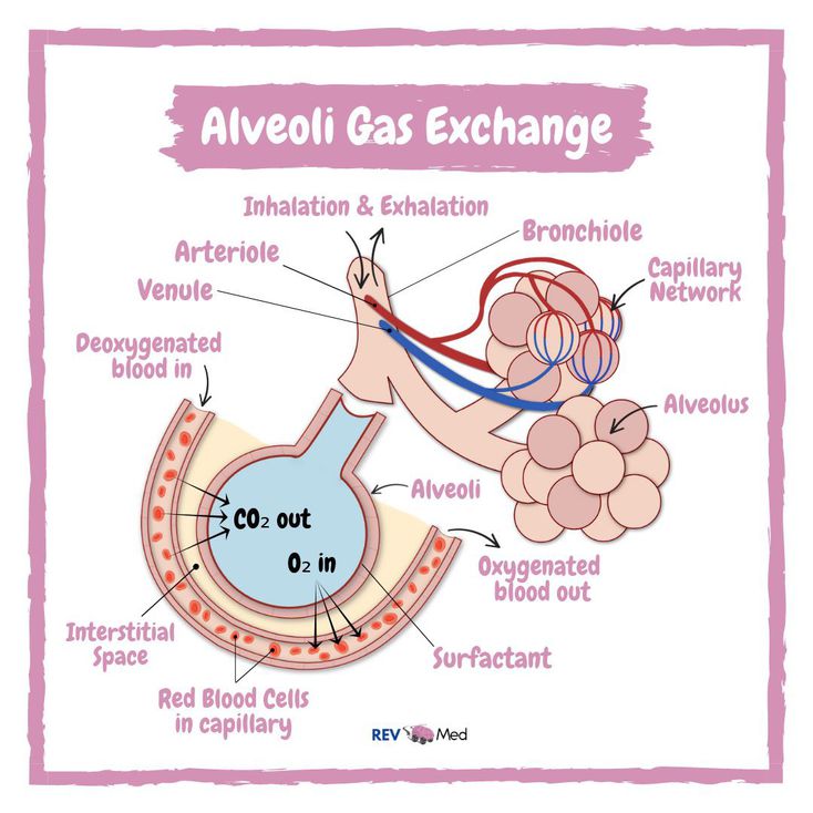 A detailed look at the site of Gas Exchange in the Alveoli! Body’s circulation is the connection between the oxygen containing atmosphere and the cells of the body who are hungry to consume oxygen! The function at the Alveoli is to exchange two gases: oxygen and carbon dioxide. The exchange takes place within millions of these alveoli, collectively called alveolus, and the capillaries that surround them. As shown, the inhalation process moves the oxygen from the alveoli to the blood in the capillaries, and the carbon dioxide moves from the blood in the capillaries to the air in the alveoli. The 3 Essential Processes: VDP Ventilation - process by which air moves in and out of the lungs. Diffusion - spontaneous movement of gases, without the use of any energy or effort by the body, between the gas in the alveoli and the blood in the capillaries in the lungs. Perfusion - process by which the cardiovascular system pumps blood throughout the lungs. Be sure to subscribe to our YouTube channel for our Easy to learn Anatomy videos! We got your back! (link in bio) Instagram @rev.med