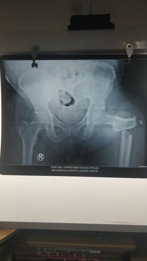 Fracture as a result of fall from stairs.
