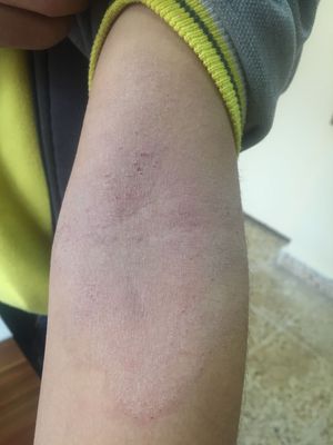 12 yrs old boy, presenting with this patchy area on flexor aspect of upper limb bilaterally for more than 1 year,associated with just itching, but no other associated symptoms,and mostly happening in winter seasons.