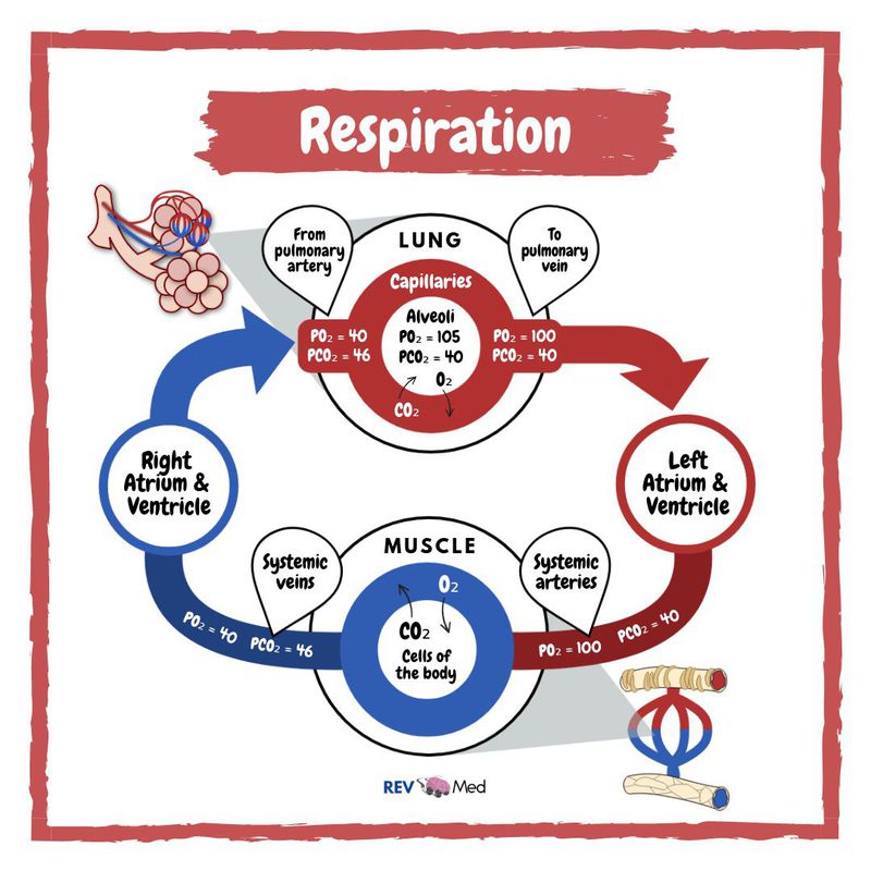 Know your ABG’s! Arterial blood gas (ABG) interpretation, something many healthcare students find difficult to understand! The Basics: You see the primary function of the respiratory system is to exchange oxygen and carbon dioxide. So oxygenated blood travels from the lungs through the pulmonary veins and into the left side of the heart, which pumps the blood to the rest of the body. Oxygen-deficient, carbon dioxide-rich blood returns to the right side of the heart through two large veins, the superior vena cava and the inferior vena cava. Then the blood is pumped through the pulmonary artery to the lungs, where it picks up oxygen and releases carbon dioxide. The real value of an ABG comes from its ability to provide a near immediate reflection of the physiology of your patient, allowing you to recognize and treat pathology more rapidly. Normal arterial ranges: *pH: 7.35 – 7.45 *PCO2: 4.7-6.0 kPa, 35-45 torr *PO2: 11-13 kPa, >79 torr *HCO3-: 22-26 mEq/L Base excess: -2 to +2 mmol/L The blood gas test can determine how well your patients lungs are able to move oxygen into the blood and remove carbon dioxide from the blood. Imbalances in the oxygen, carbon dioxide, and pH levels of the blood will make you say “ah HA!” and better understand your patients condition! We’ll get more into ABGs, for now head over to our YouTube channel! Subscribe (link in bio) Instagram @rev.med