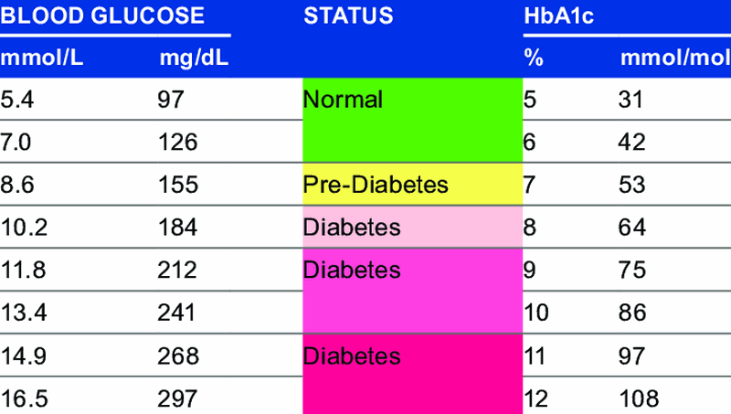 The reference range for *hemoglobin A1c (HbA1c)* levels in healthy adults is 4.8-5.7%. The decision limits for nonpregnant adults, according to the American Diabetes Association, are as follows: ➡️The diagnostic criterion for diabetes is a hemoglobin A1c level greater than or equal to 6.5% NGSP units ➡️For patients with diabetes mellitus, the goal of therapy is a level below 7.0%, in general ➡️A goal of less than 6.5% may be appropriate for some patients who can achieve this without significant episodes of hypoglycemia (eg, persons newly diagnosed with diabetes, individuals with diabetes who are managed with diet and exercise alone) ➡️For elderly patients, patients with a short life expectancy, and patients with frequent/severe episodes of hypoglycemia, a less strict goal of below 8% may be more appropriate and must be determined on an individualized basis