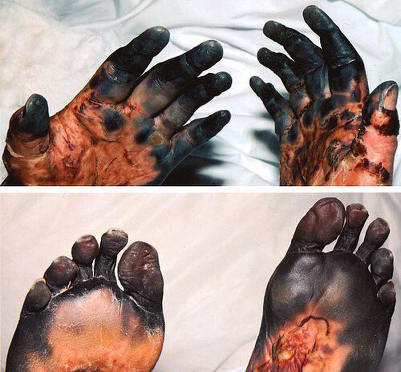 This 47-year-old man with a 1-month history of generalized arthralgias experienced the abrupt onset of fever, myalgias, abdominal pain, and diarrhea. Twenty-four hours later, his fingers and toes appeared cyanotic and then rapidly became necrotic. Aside from an oral temperature of 102°F, his physical examination was otherwise unremarkable. The chest radiograph disclosed cardiomegaly. Percutaneous renal biopsy showed necrotic parenchyma. Renal angiography demonstrated bilateral arterial microaneurysms. With a presumptive diagnosis of polyarteritis nodosa, a systemic inflammatory necrotizing vasculitis that typically affects the small to medium-sized muscular arteries, the patient received prednisone and cyclophosphamide. His condition stabilized, and he underwent amputation of the necrotic digits. However, 4 months after onset of his symptoms, he suffered a cerebellar hemorrhage and died. At autopsy, the significant finding was polyarteritis nodosa affecting multiple organs. Originally published - AHA Journals.