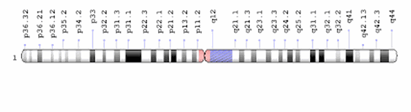 Chromosome 1 is the designation for the largest human chromosome. Humans have two copies of chromosome 1, as they do with all of the autosomes, which are the non-sex chromosomes. Chromosome 1 spans about 249 million nucleotide base pairs, which are the basic units of information for DNA. It represents about 8% of the total DNA in human cells. There are 890 known diseases related to this chromosome. Some of these diseases are hearing loss, Alzheimer's disease, glaucomaand breast cancer. Rearrangements and mutations of chromosome 1 are prevalent in cancer and many other diseases. Patterns of sequence variation reveal signals of recent selection in specific genes that may contribute to human fitness, and also in regions where no function is evident. Complete monosomy (only having one copy of the entire chromosome) is invariably lethal before birth. Complete trisomy (having three copies of the entire chromosome) is lethal within days after conception. Some partial deletions and partial duplications produce birth defects. The following diseases are some of those related to genes on chromosome 1 (which contains the most known genetic diseases of any human chromosome): 1q21.1 deletion syndrome 1q21.1 duplication syndrome Alzheimer's disease Breast cancer Brooke Greenberg Disease (Syndrome X) Carnitine palmitoyltransferase II deficiency Charcot–Marie–Tooth disease, types 1 and 2 collagenopathy, types II and XI congenital hypothyroidism Ehlers-Danlos syndrome Factor V Leiden thrombophilia Familial adenomatous polyposis galactosemia Gaucher disease Gaucher-like disease Gelatinous drop-like corneal dystrophy Glaucoma Hearing loss, autosomal recessive deafness 36 Hemochromatosis Hepatoerythropoietic porphyria Homocystinuria Hutchinson Gilford progeria syndrome 3-hydroxy-3-methylglutaryl-CoA lyase deficiency Hypertrophic cardiomyopathy, autosomal dominant mutations of TNNT2; hypertrophy usually mild; restrictive phenotype may be present; may carry high risk of sudden cardiac death maple syrup urine disease medium-chain acyl-coenzyme A dehydrogenase deficiency Microcephaly Muckle-Wells Syndrome Nonsyndromic deafness Oligodendroglioma Parkinson disease Pheochromocytoma porphyria porphyria cutanea tarda popliteal pterygium syndrome prostate cancer Stickler syndrome TAR syndrome trimethylaminuria Usher syndrome Usher syndrome type II Van der Woude syndrome Variegate porphyria