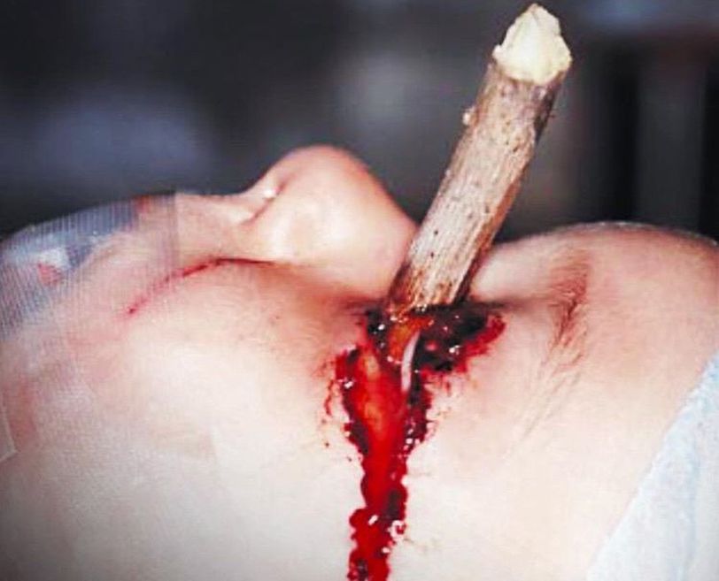 A 2-YEAR-OLD boy fell froma second-floor balcony into a bush, and a tree branch penetrated into the orbit after causing a major laceration in the eyelid. The piece of wood penetrated the infra-temporal fossa via a fracture of the lateral wall. case, multiple pieces of leaf and bark were carefully removed and the lesion was irrigated using antibiotic solution. The lid laceration was repaired, and a drain was placed. Four years later, he had perfect visual acuity, completle eye motility, and a well-healed eyelid. A happy end to a tragic episode! SWIPE LEFT to see the whole case and tag your friends that are moms, dads or anyone that loves kids and help us to prevent such dangerous accidents.