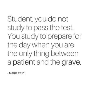"Student, you do not study to pass the test. You study to prepare for the day when you are the only thing between a patient and the grave."